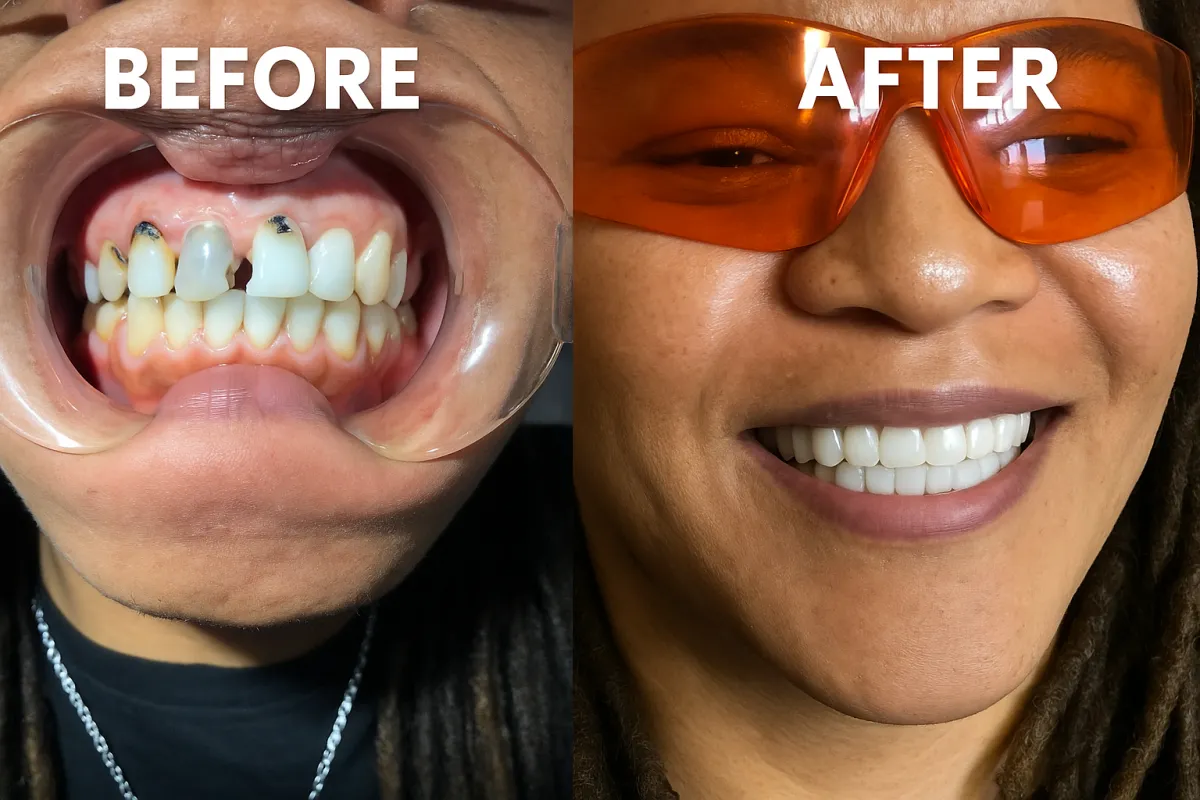 Includes extraction of all remaining damaged teeth. ($4000 Value)
